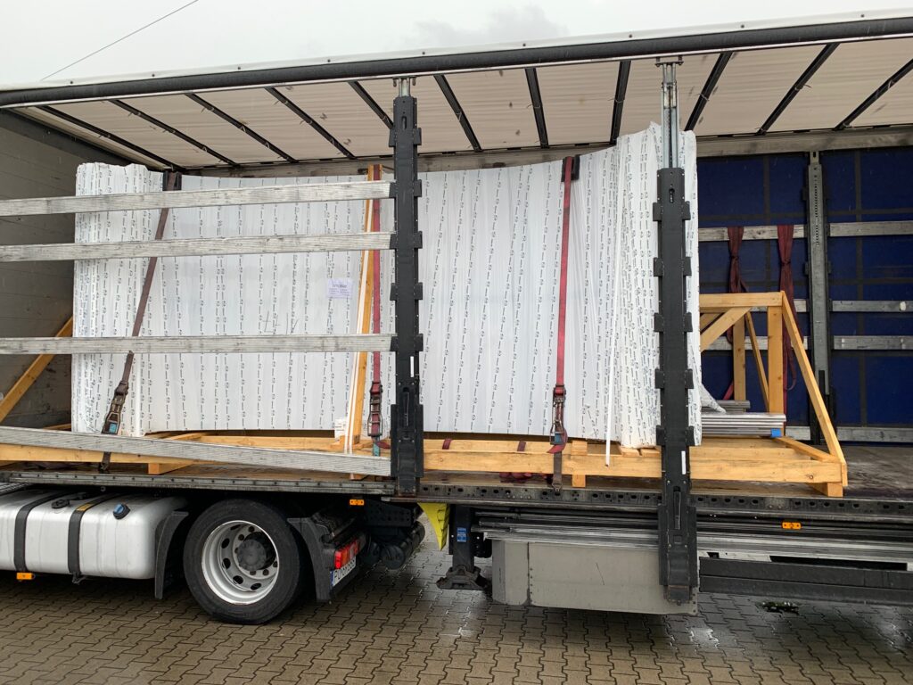 Kapellet transporteras på en speciell pall för enkel lossning och transport. Vår logistikavdelning informerar dig i förväg om en kran eller gaffeltruck kommer att behövas för lossning.