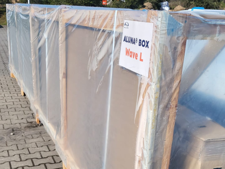Aluna® BOX – zestaw do samodzielnego montażu zadaszenia basenowego, w którym znajdziesz wszystko to, co jest potrzebne, aby po kilku godzinach cieszyć się własnoręcznie zainstalowaną obudową.