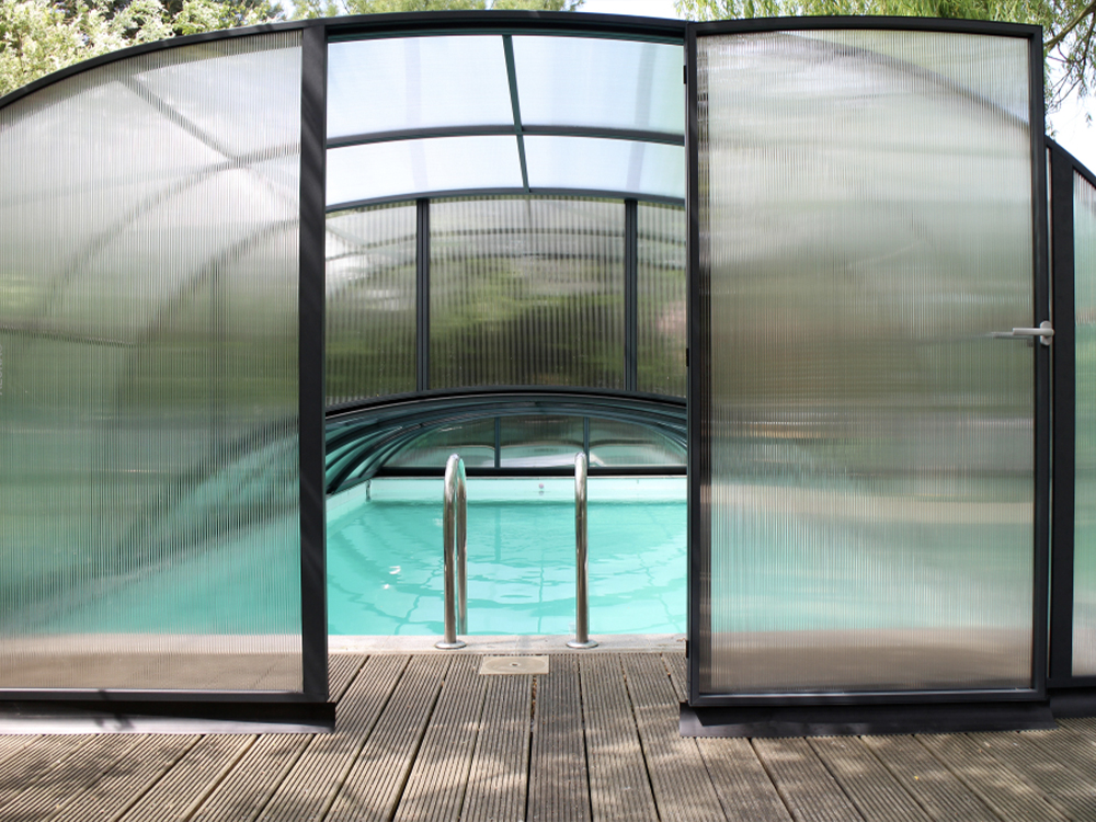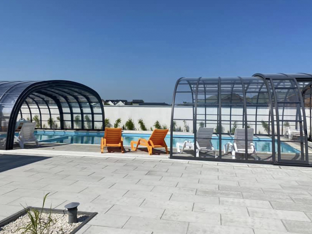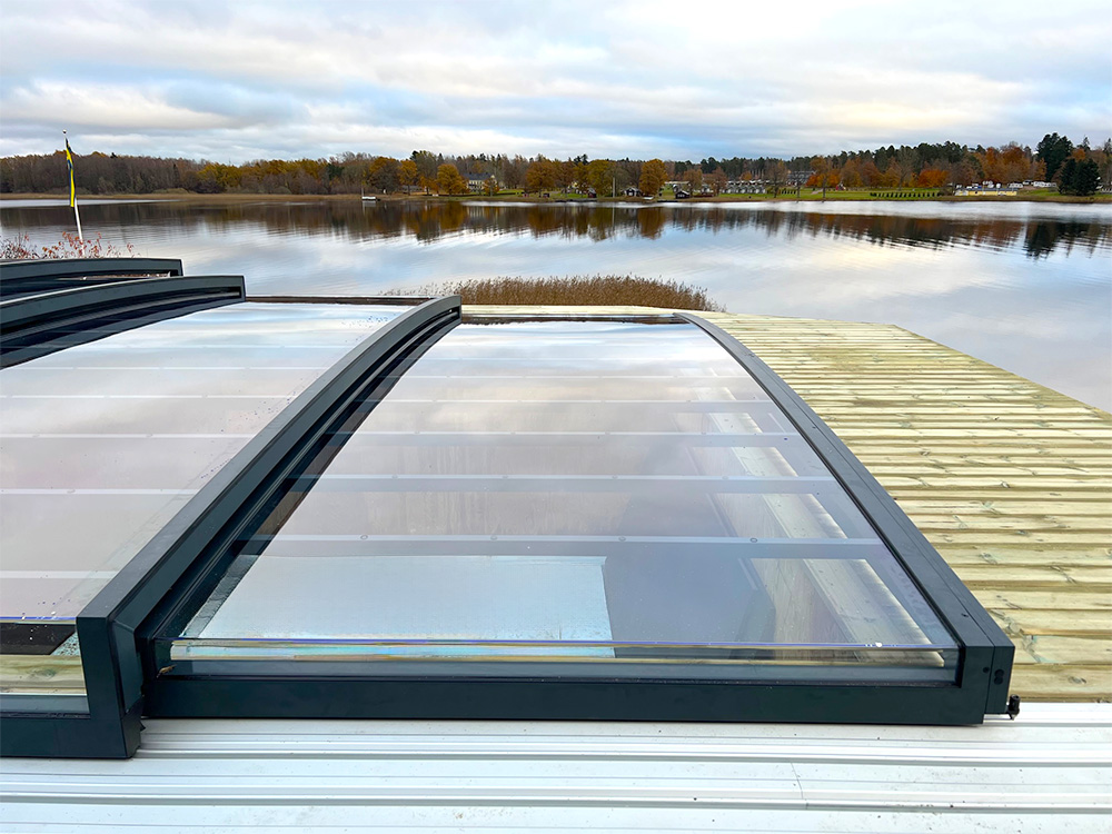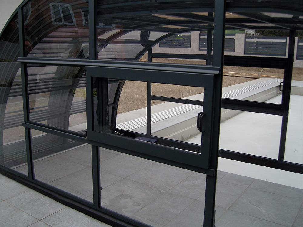 Wentylacja pasywna – świetnie sprawdza się przy zadaszeniach wyższych, ponieważ znacznie ogranicza liczbę skroplin na wewnętrznej stronie zadaszenia, co przekłada się na komfort pływania pod zamkniętą konstrukcją
