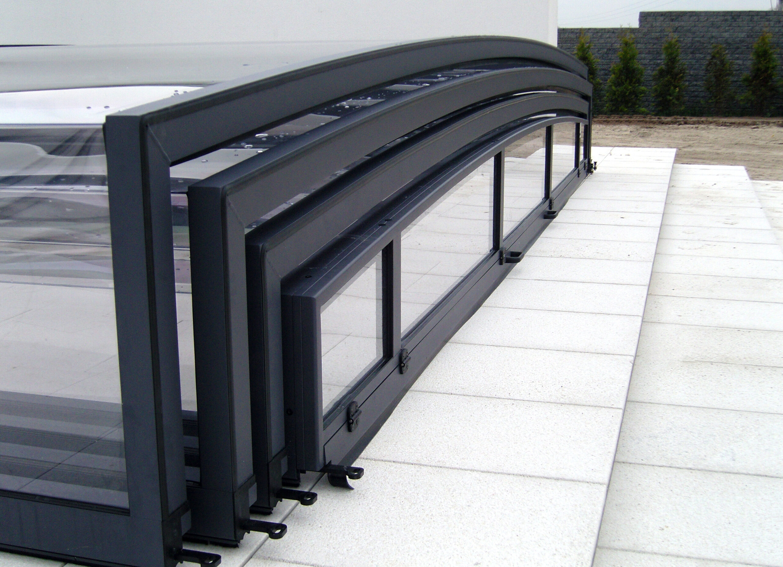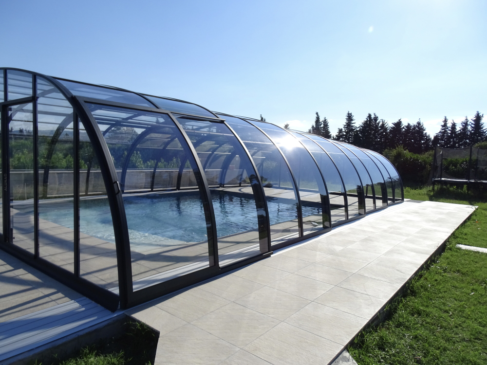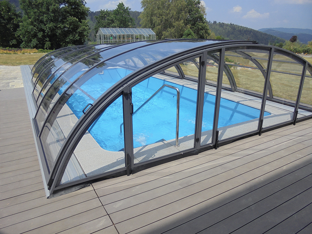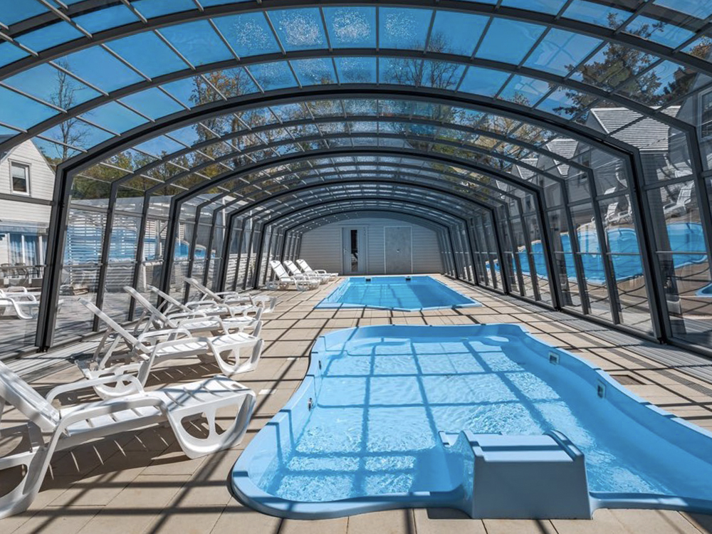 Wentylacja pasywna – świetnie sprawdza się przy zadaszeniach wyższych, ponieważ znacznie ogranicza liczbę skroplin na wewnętrznej stronie zadaszenia, co przekłada się na komfort pływania pod zamkniętą konstrukcją