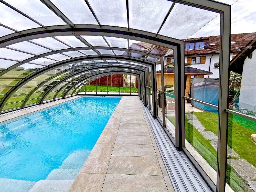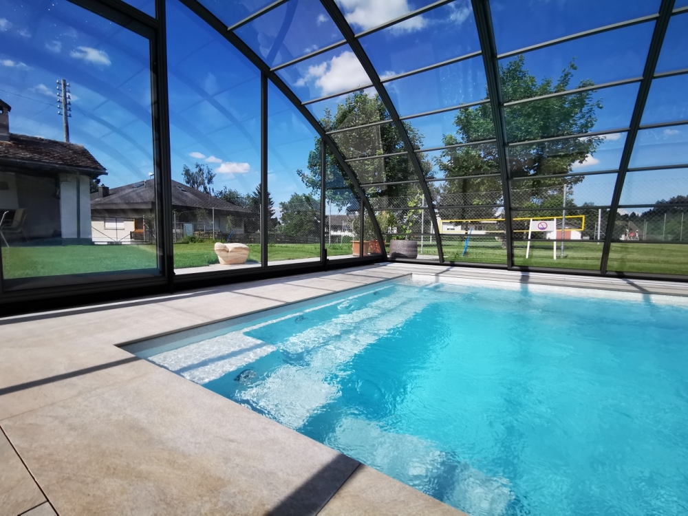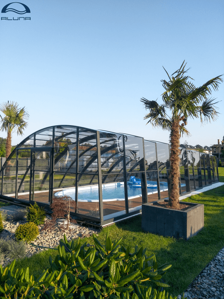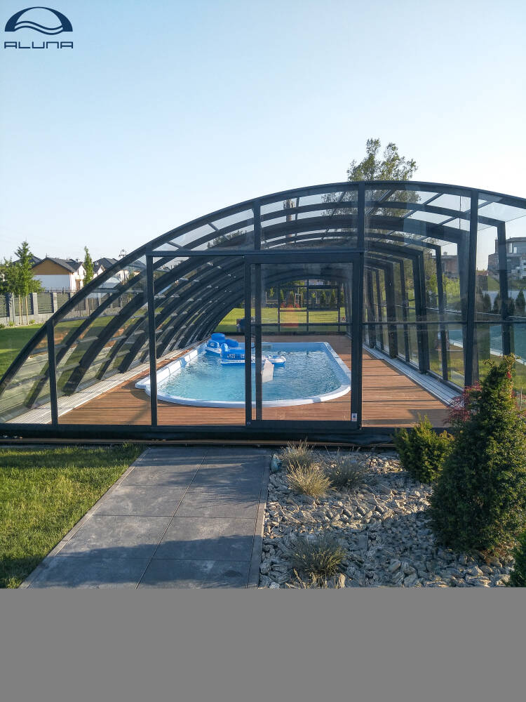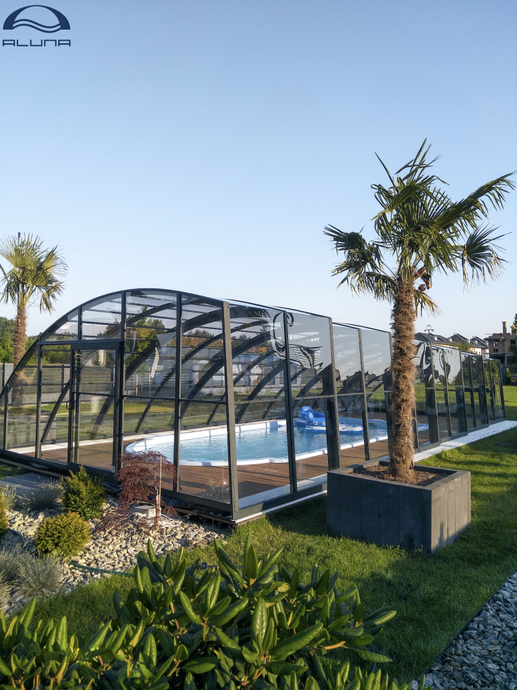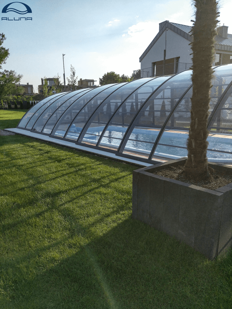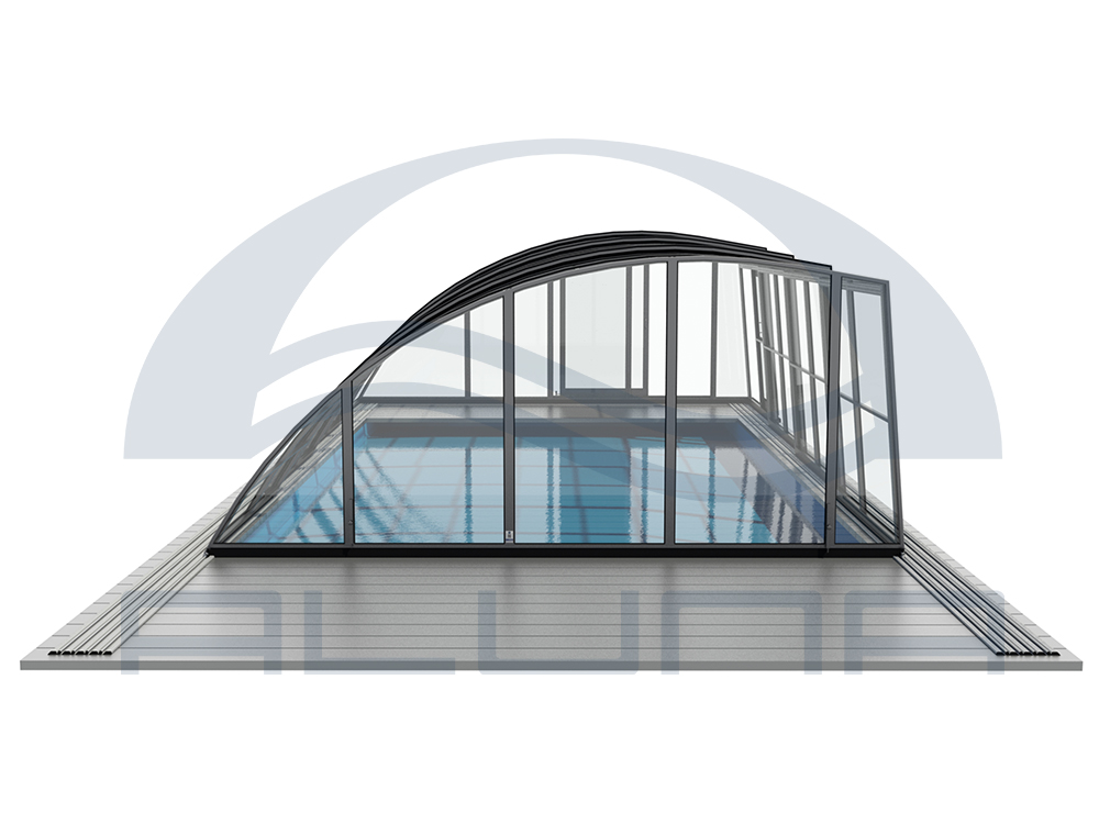 Aluna® Delta II är den perfekta lösningen för personer som, förutom möjligheten att simma, också vill ha en funktionell terrass i den höga delen av taket.