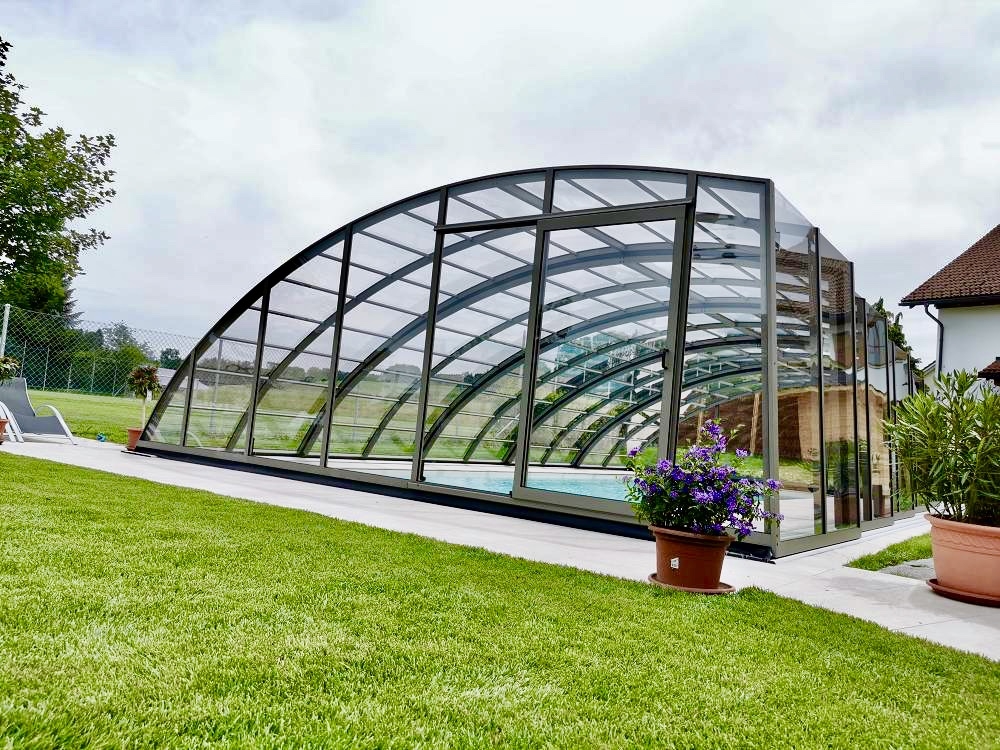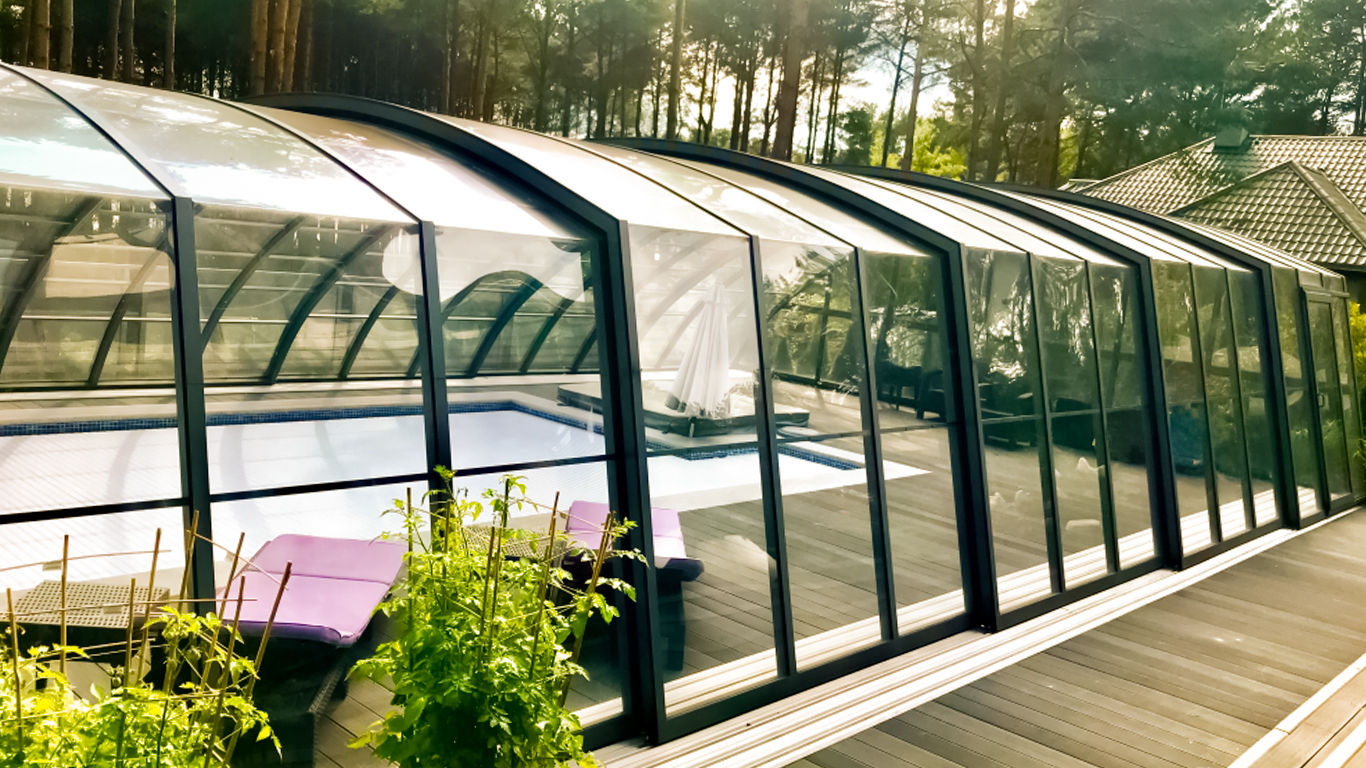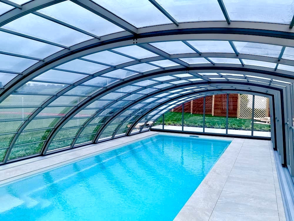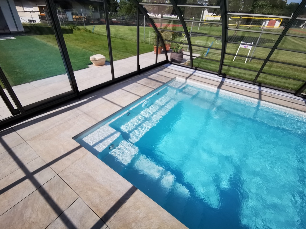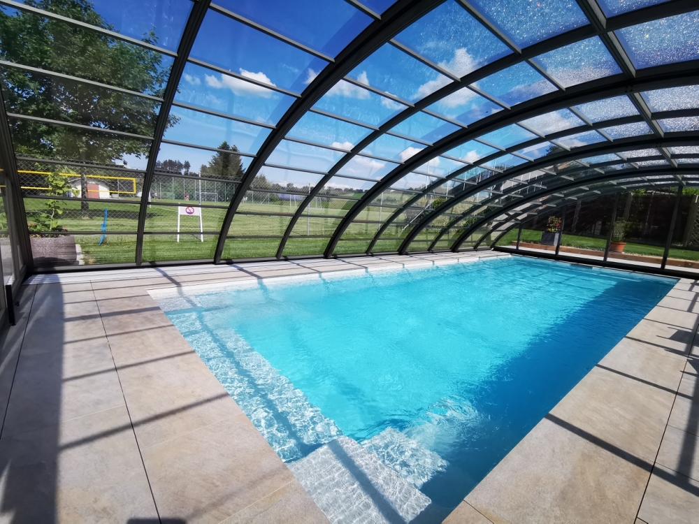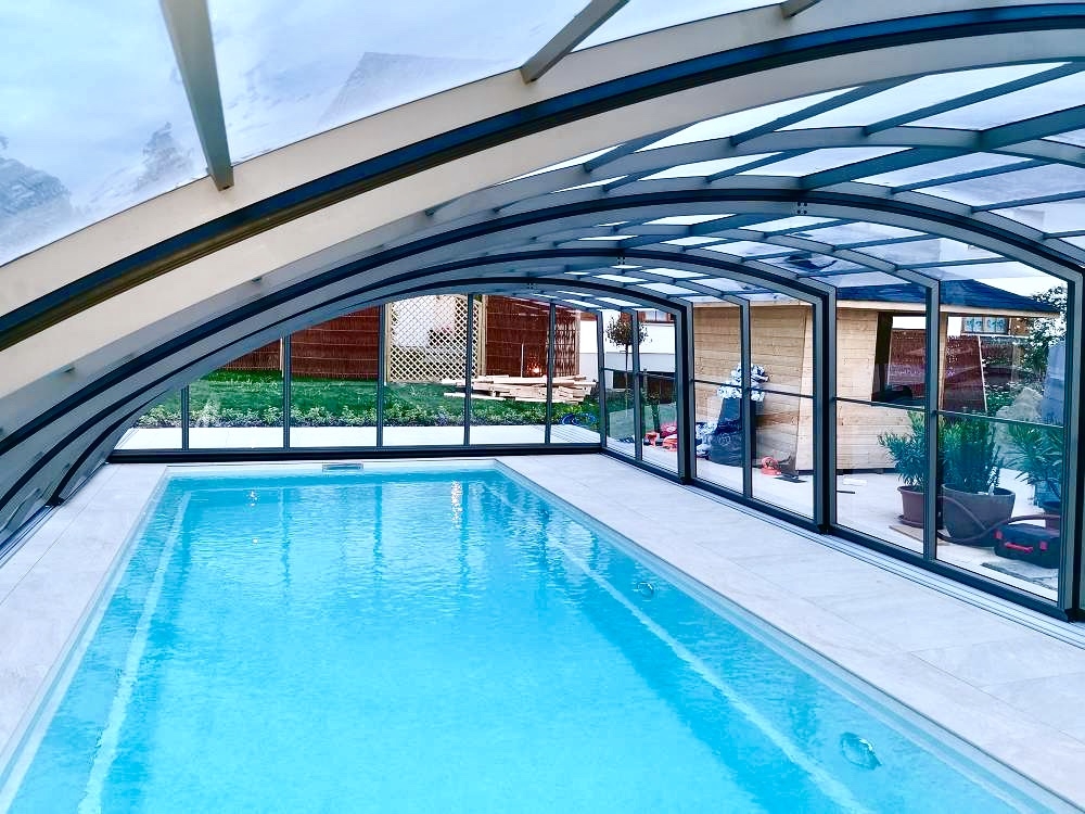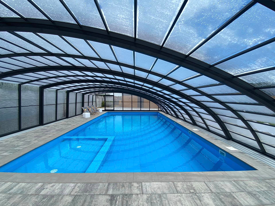 Aluna® Delta II är den perfekta lösningen för personer som, förutom möjligheten att simma, också vill ha en funktionell terrass i den höga delen av taket.