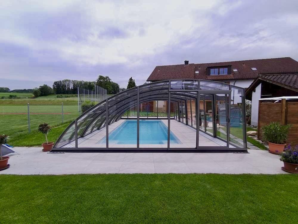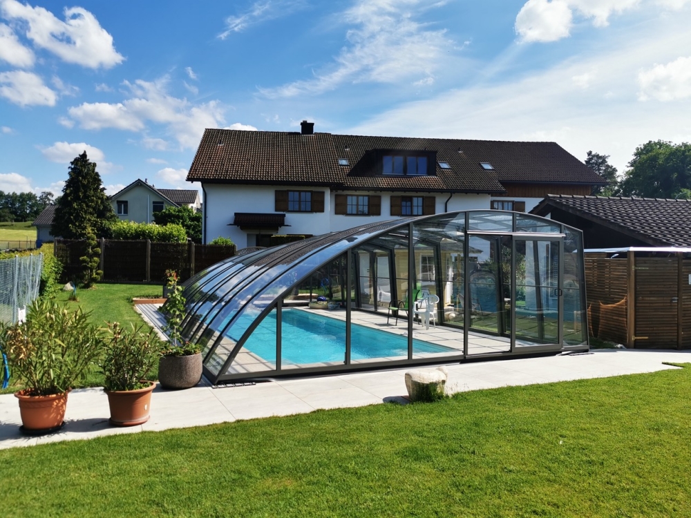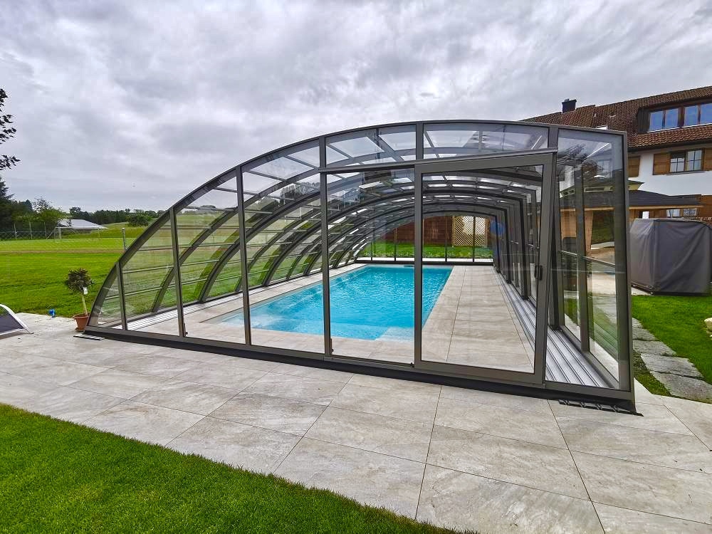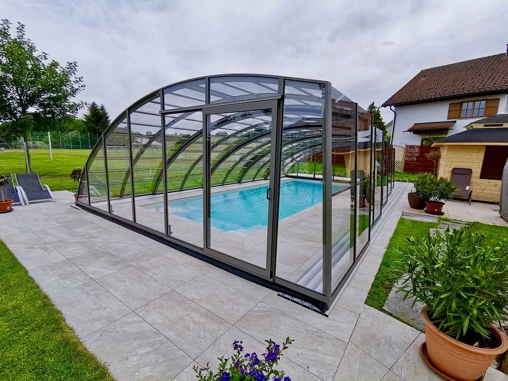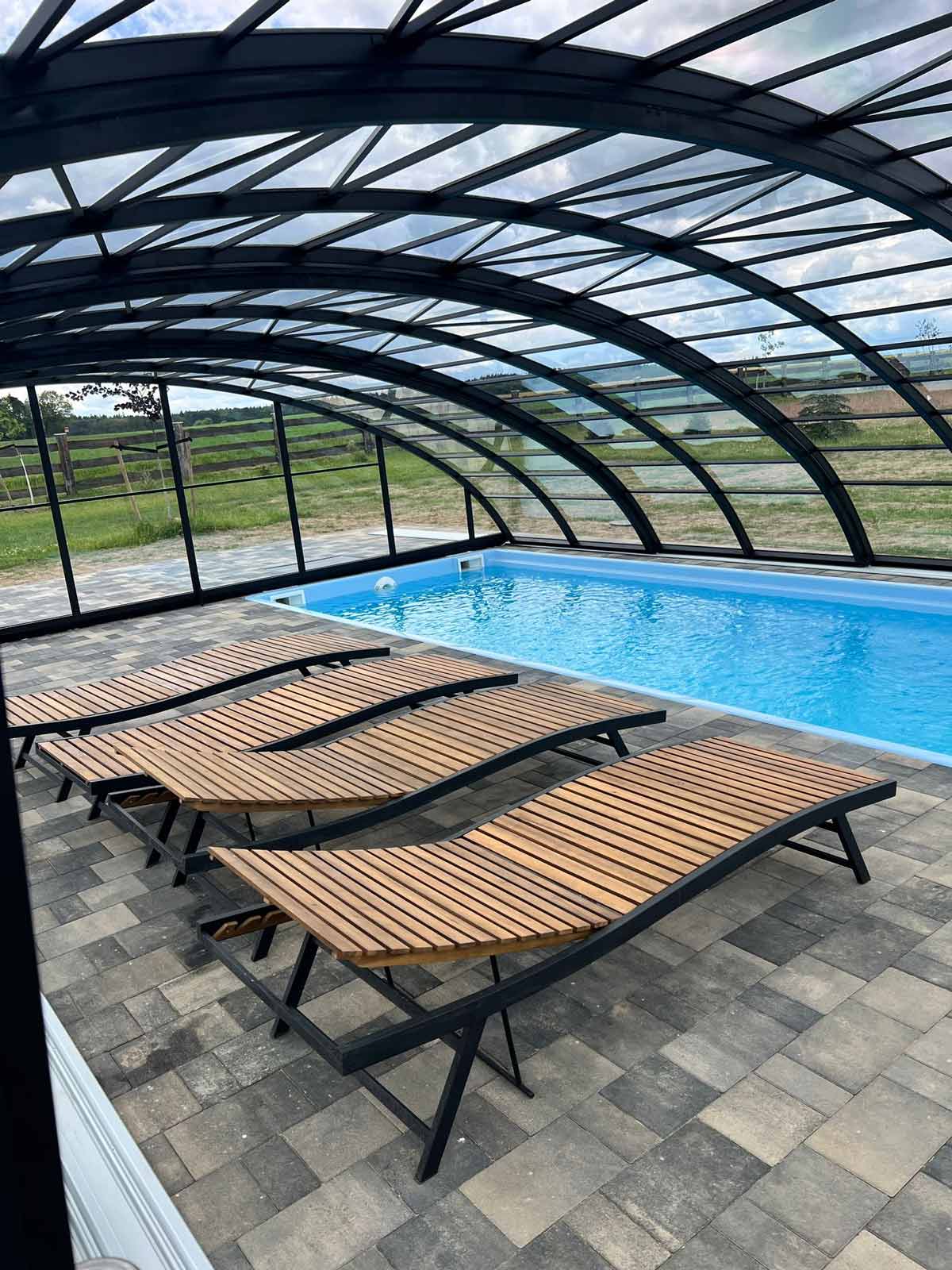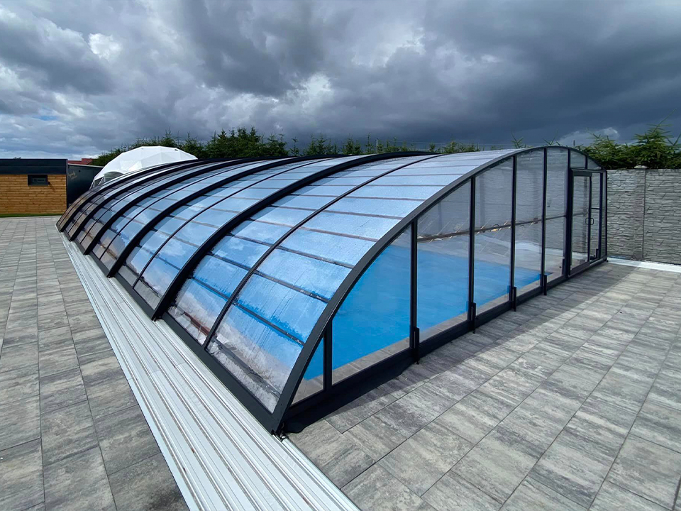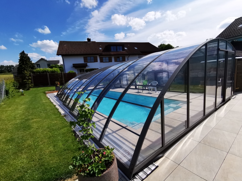 Aluna® Delta II är den perfekta lösningen för personer som, förutom möjligheten att simma, också vill ha en funktionell terrass i den höga delen av taket.