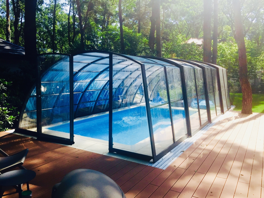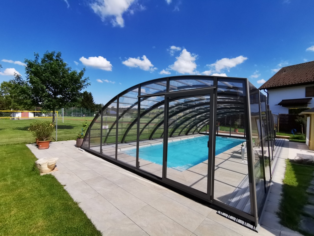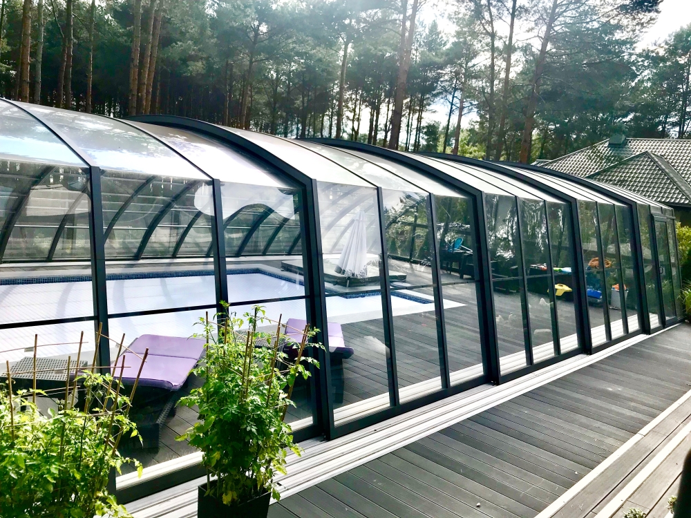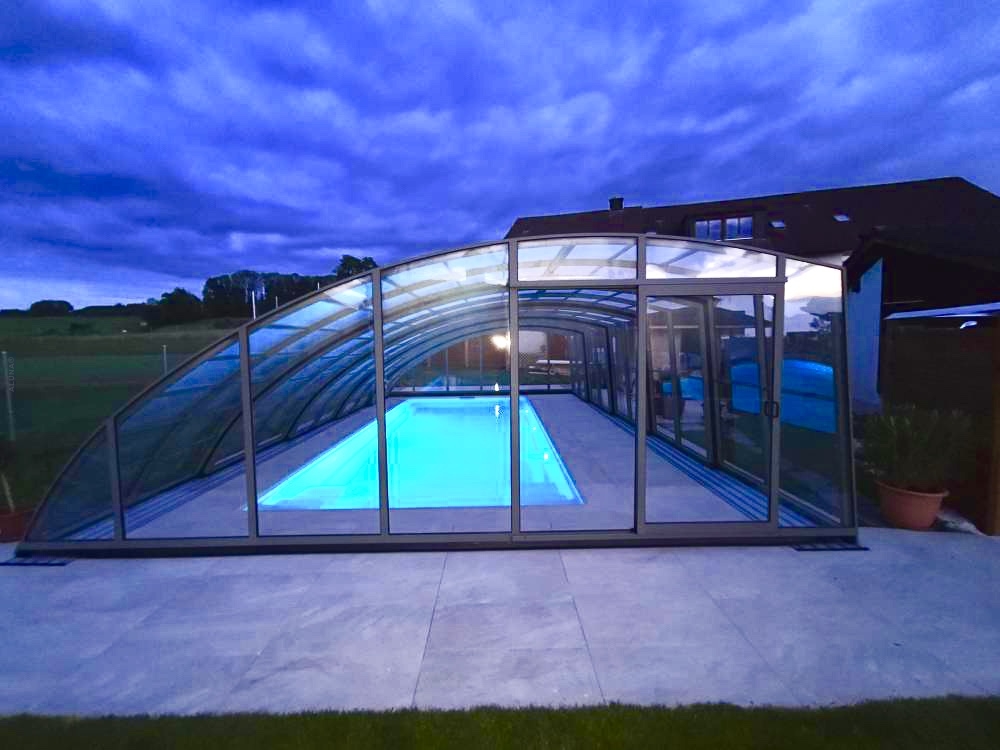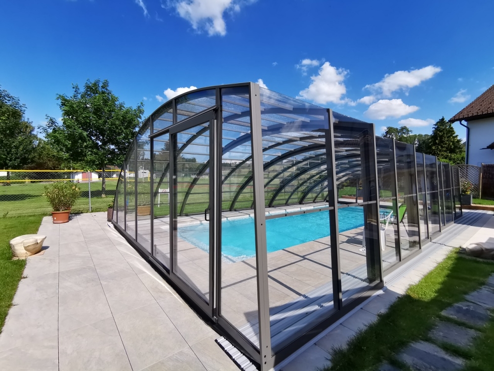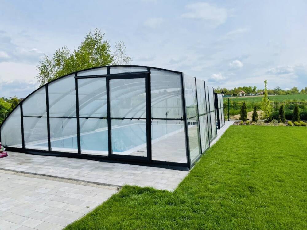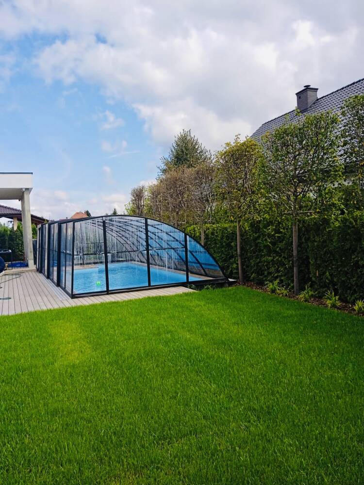 Aluna® Delta II är den perfekta lösningen för personer som, förutom möjligheten att simma, också vill ha en funktionell terrass i den höga delen av taket.