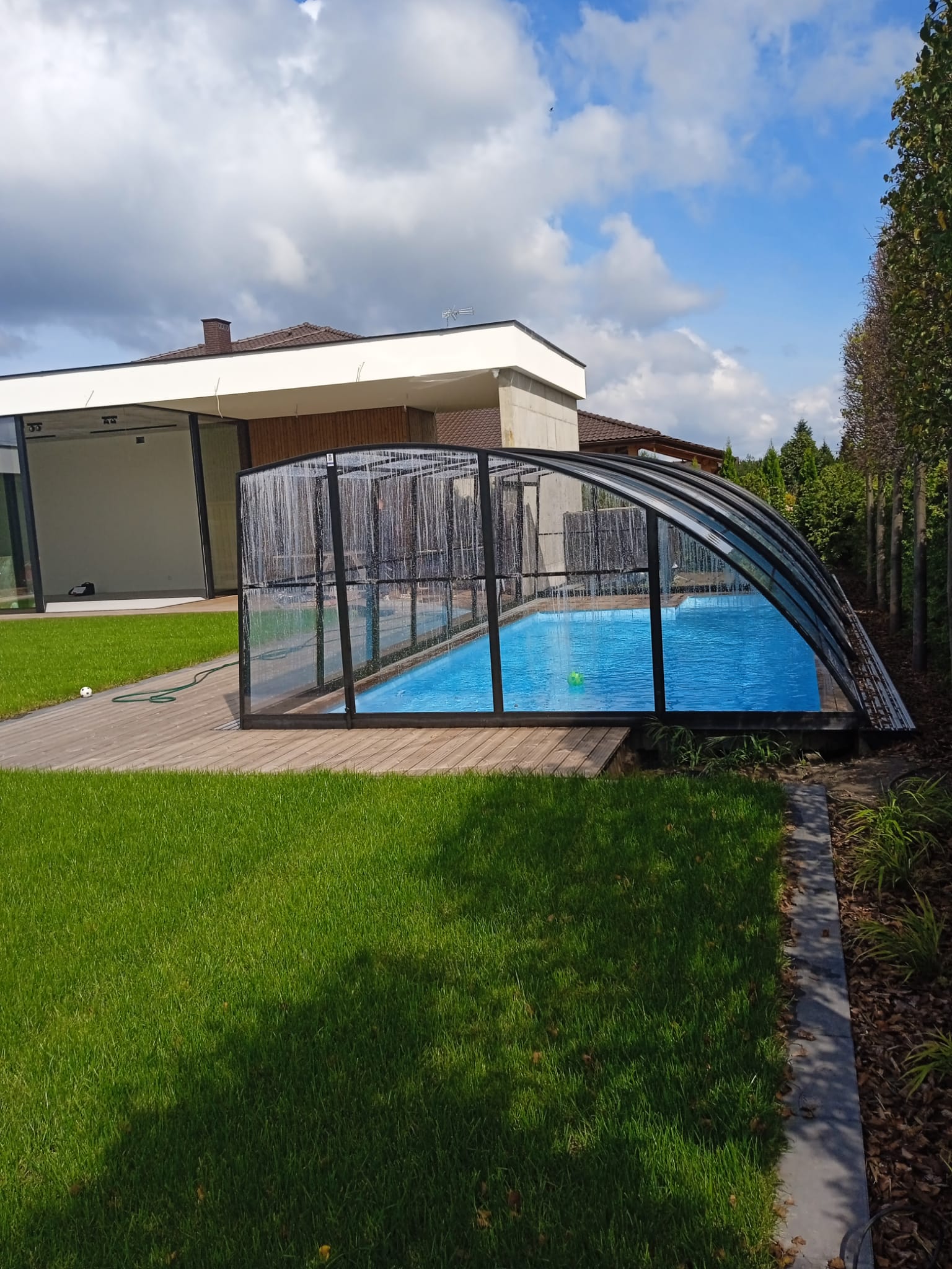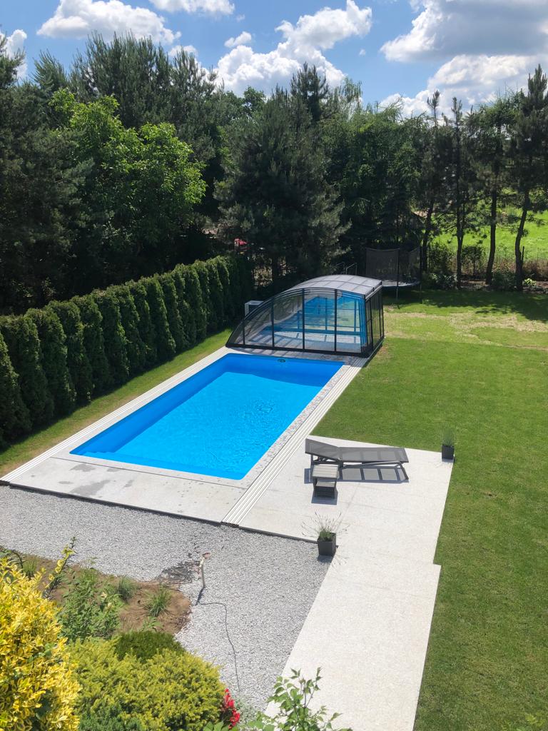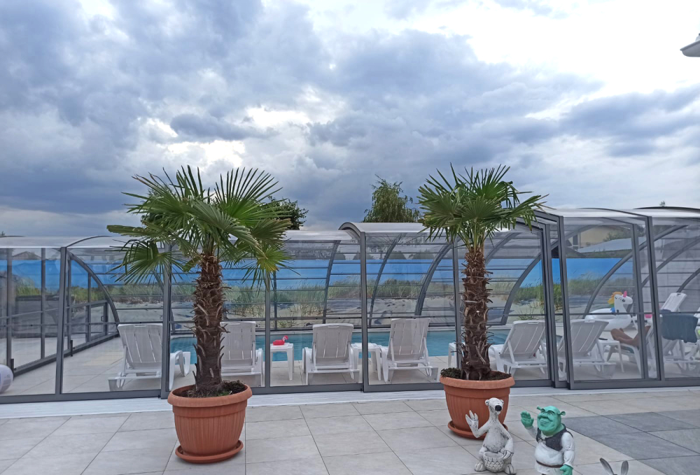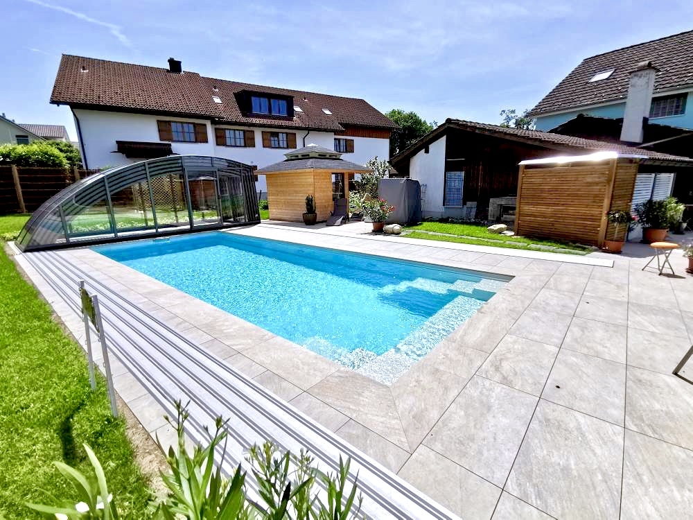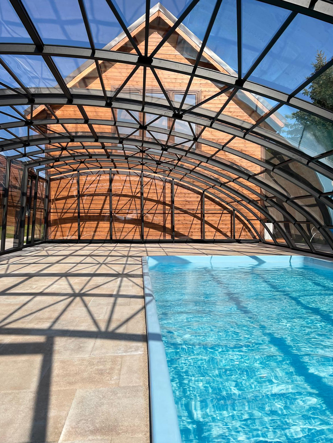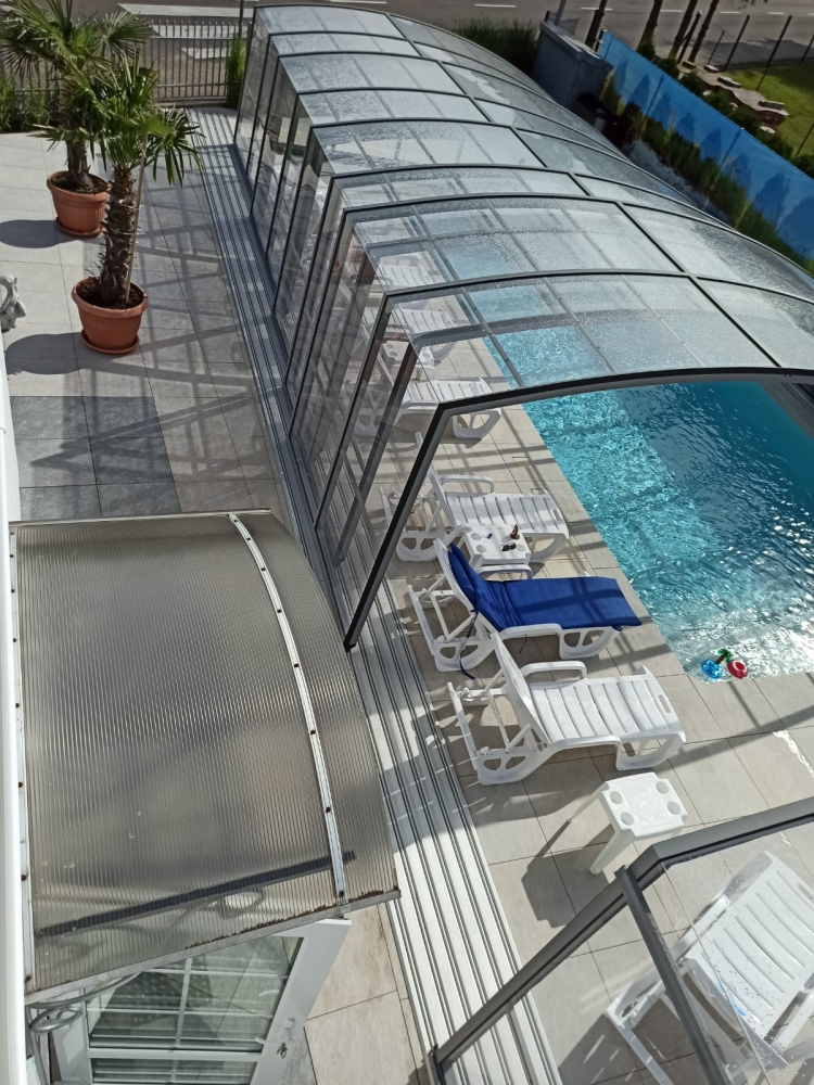 Aluna® Delta II är den perfekta lösningen för personer som, förutom möjligheten att simma, också vill ha en funktionell terrass i den höga delen av taket.