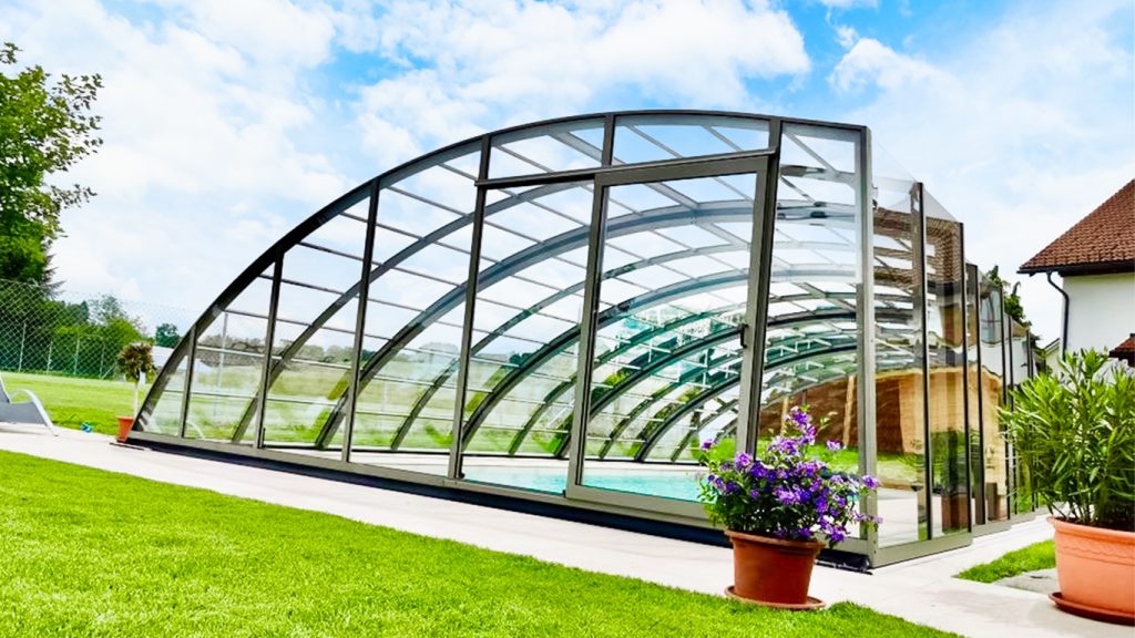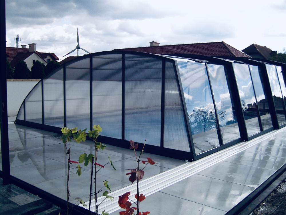 Aluna® Delta II är ett pooltäckningstak från högserien, med en modernistisk och karakteristisk form.