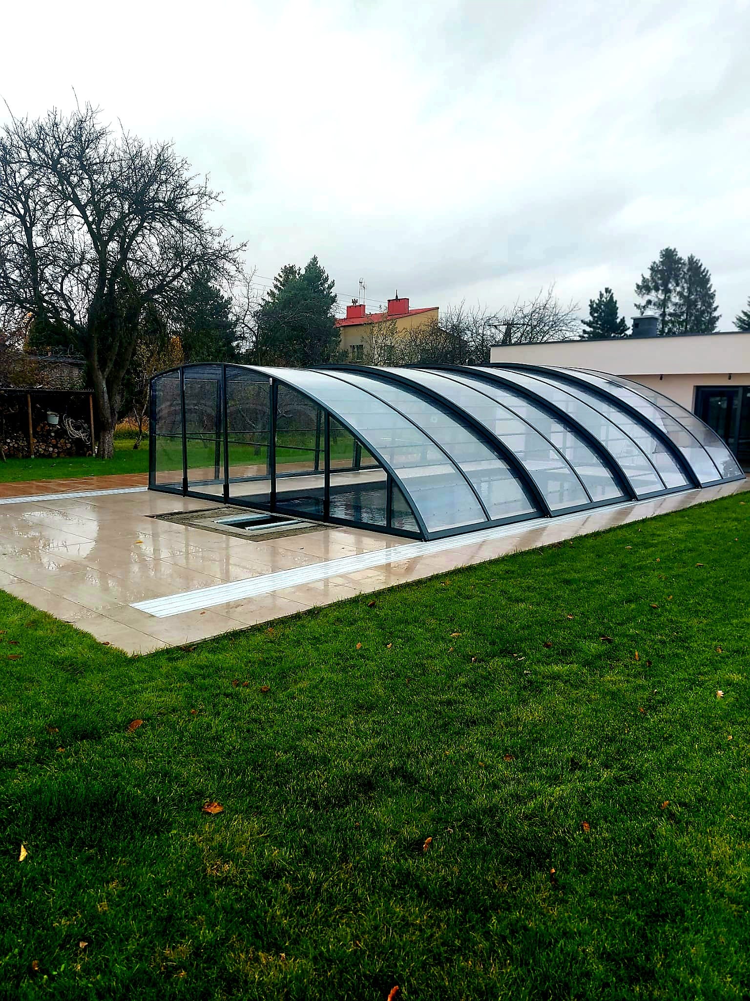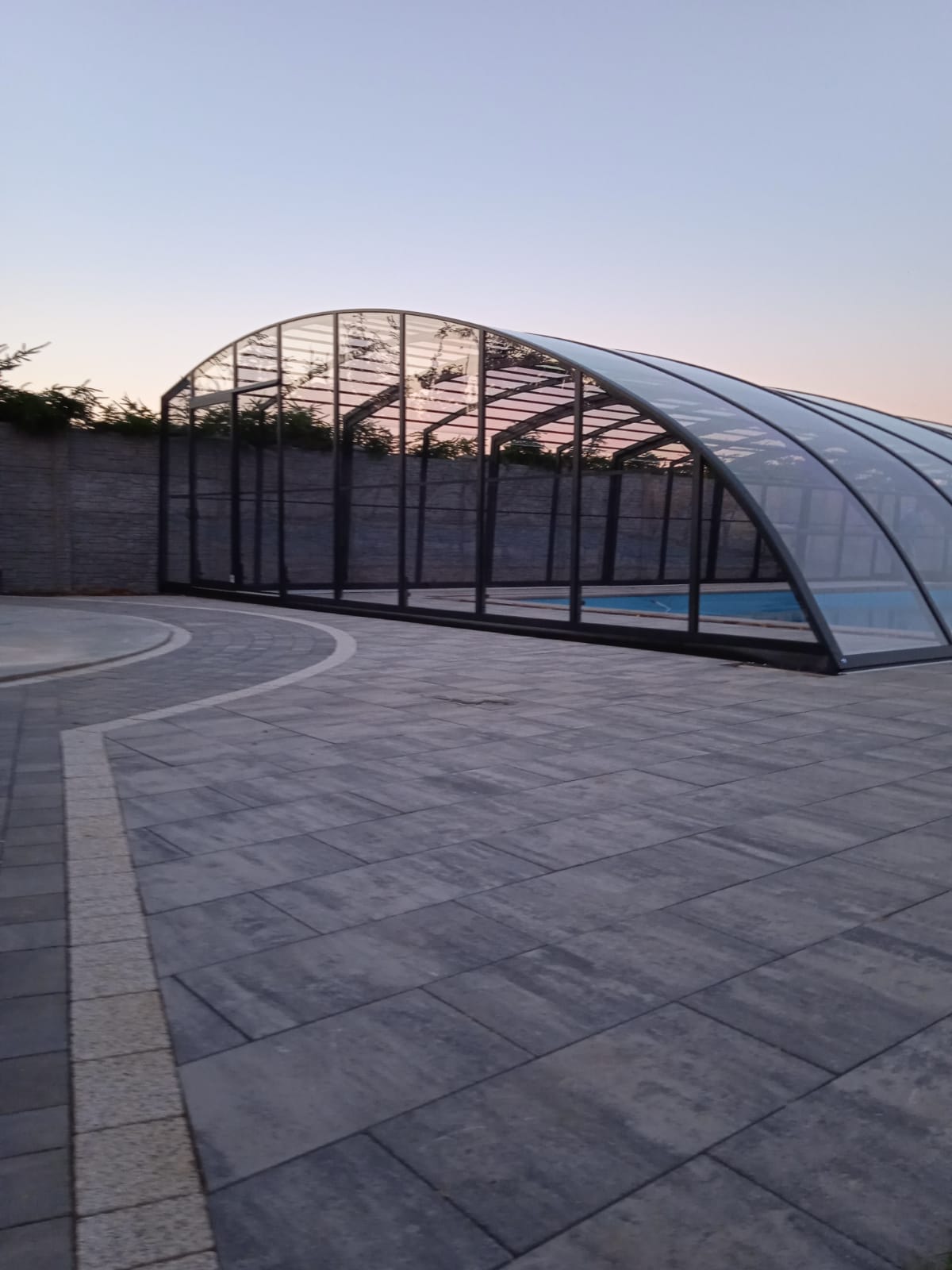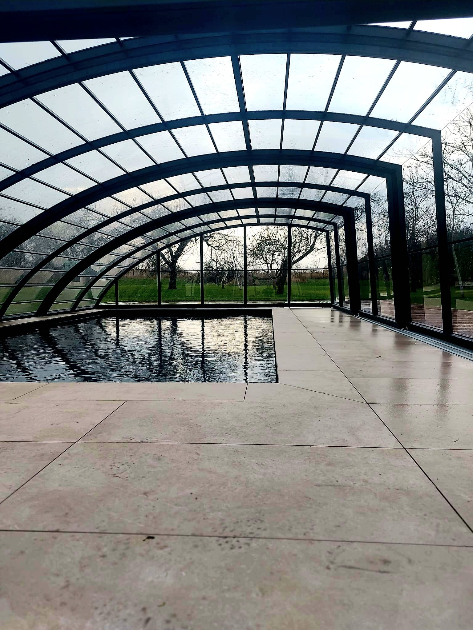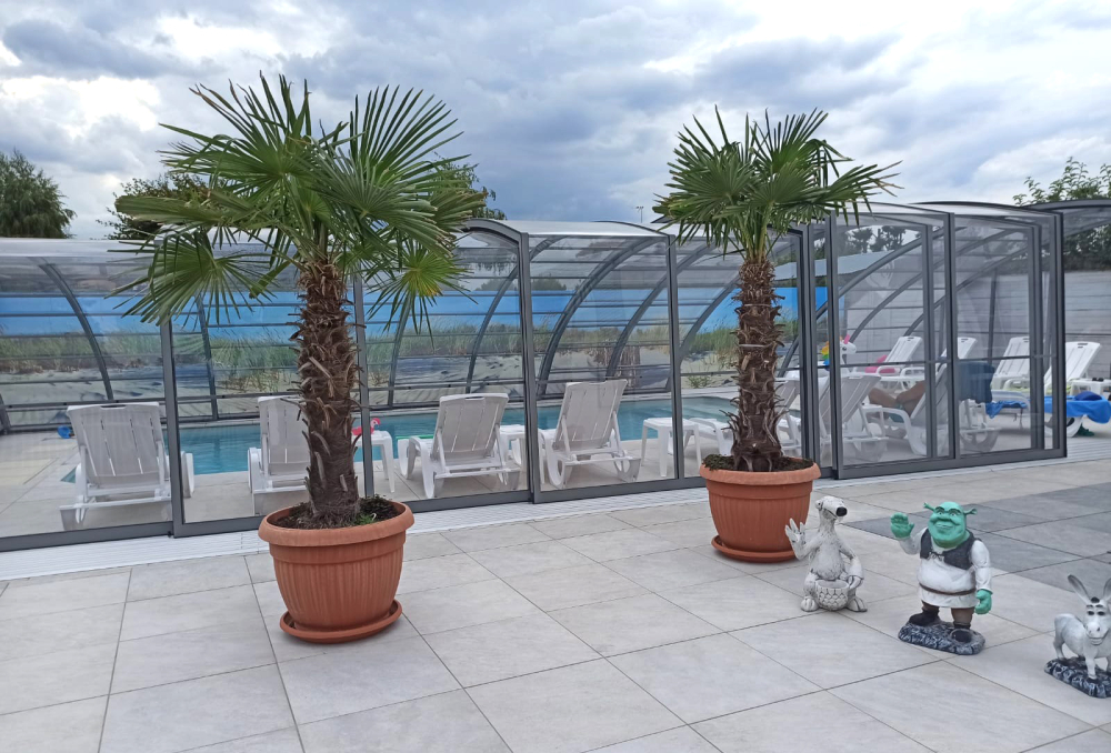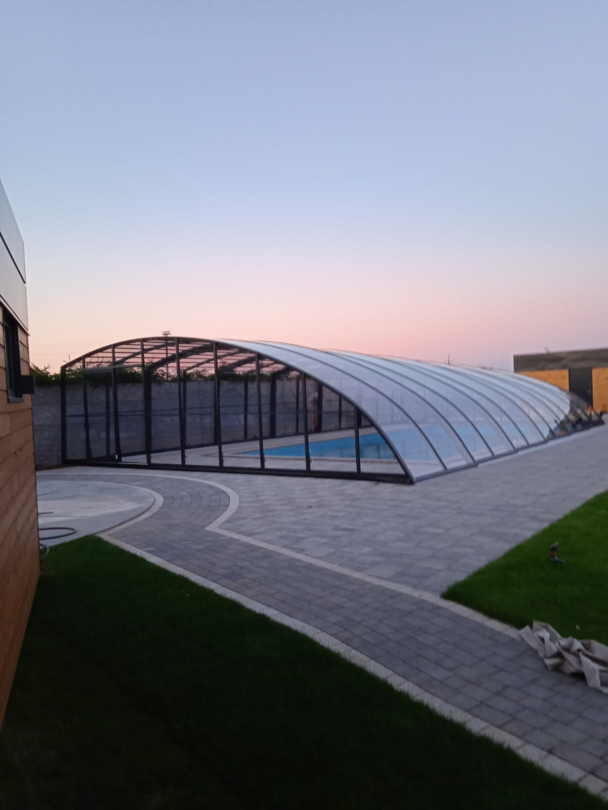 En mycket viktig del av konstruktionen är de ytterst funktionella och praktiska ingångsdörrarna, placerade i gavelväggen, som ger användaren möjlighet att gå in i poolområdet. Taket har även ett extra tillval med sidoplacerade skjutdörrar.