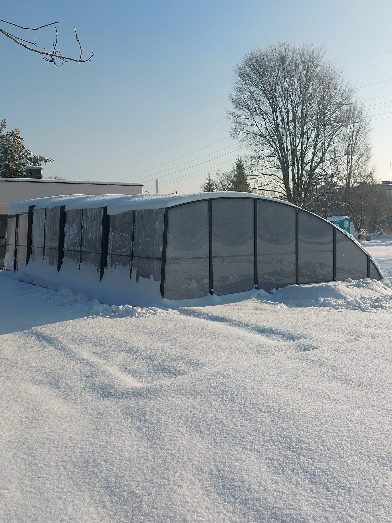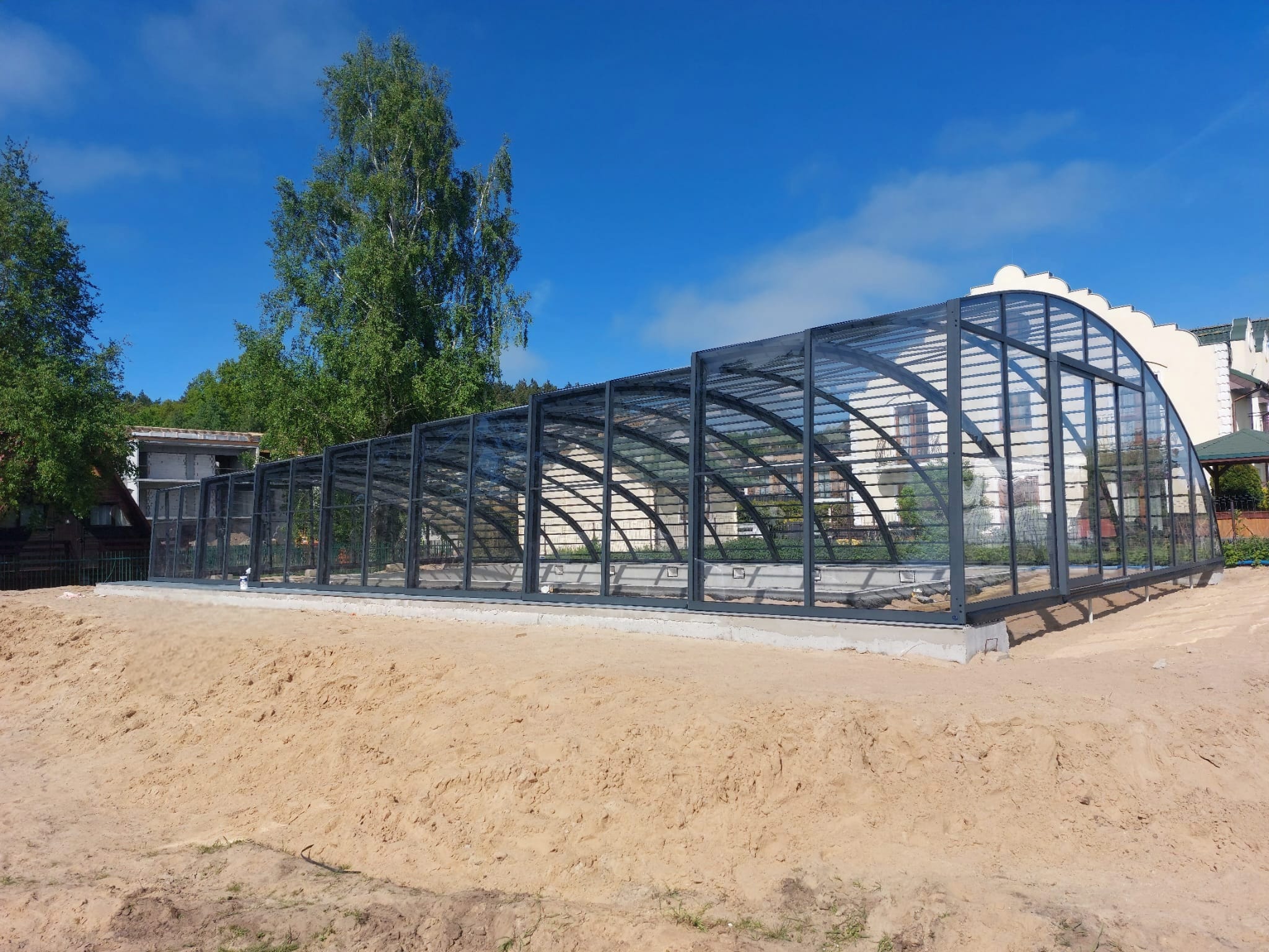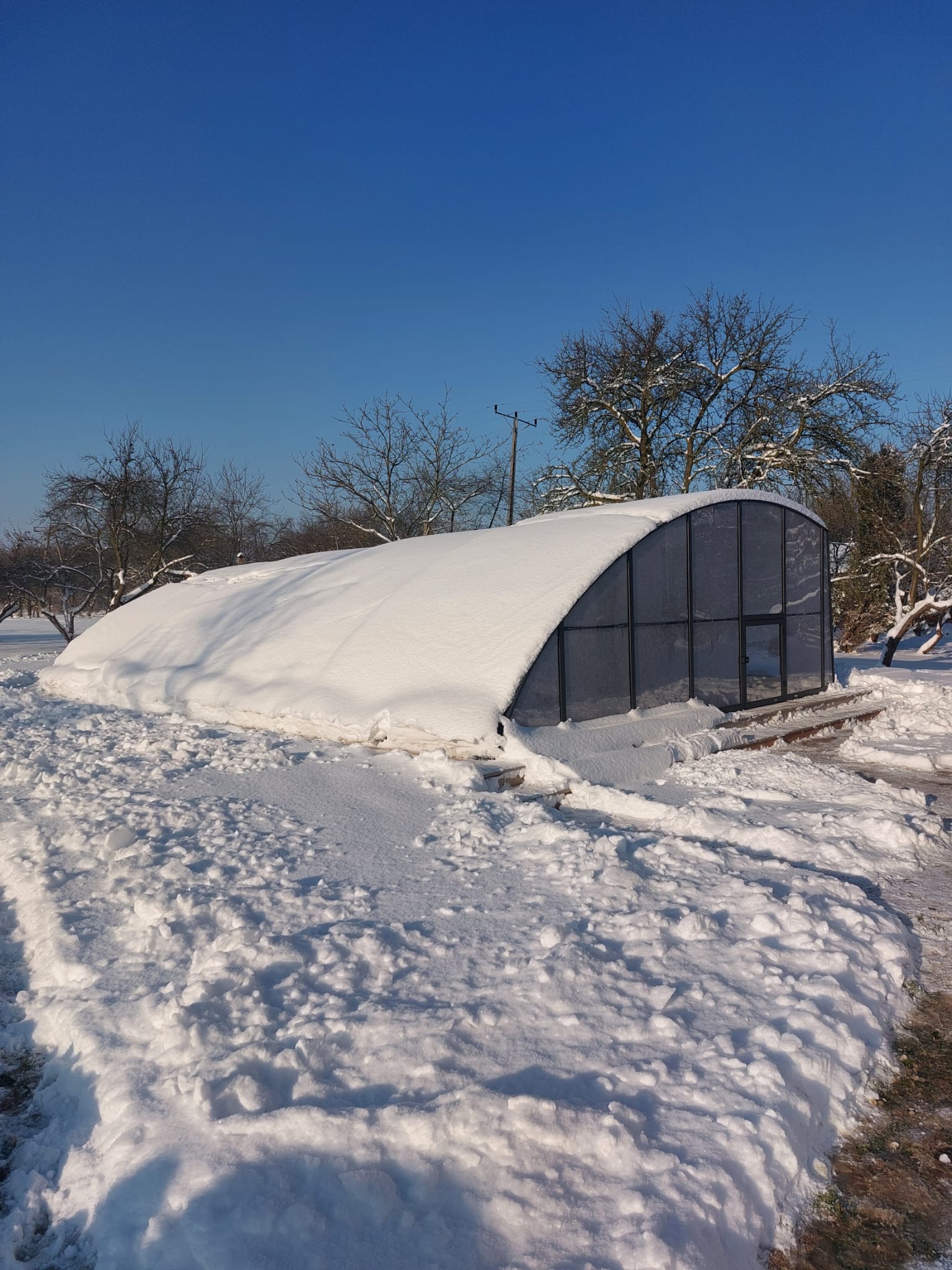 Dessutom eliminerar detta tak (genom den bågformade sidokonstruktionen) effektivt problemen med liggande snö och leder bort regnvatten på ett tillförlitligt sätt.