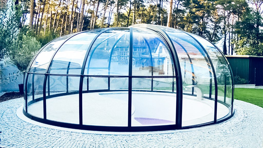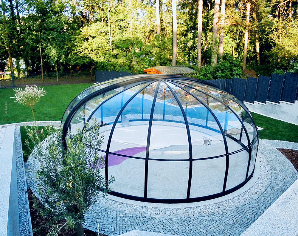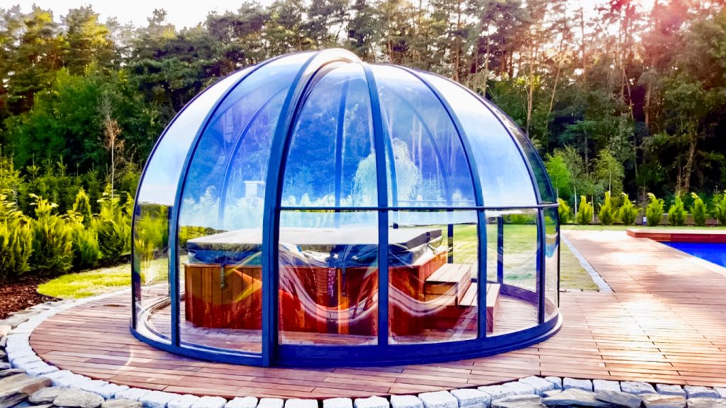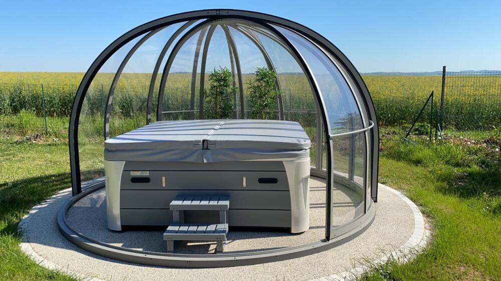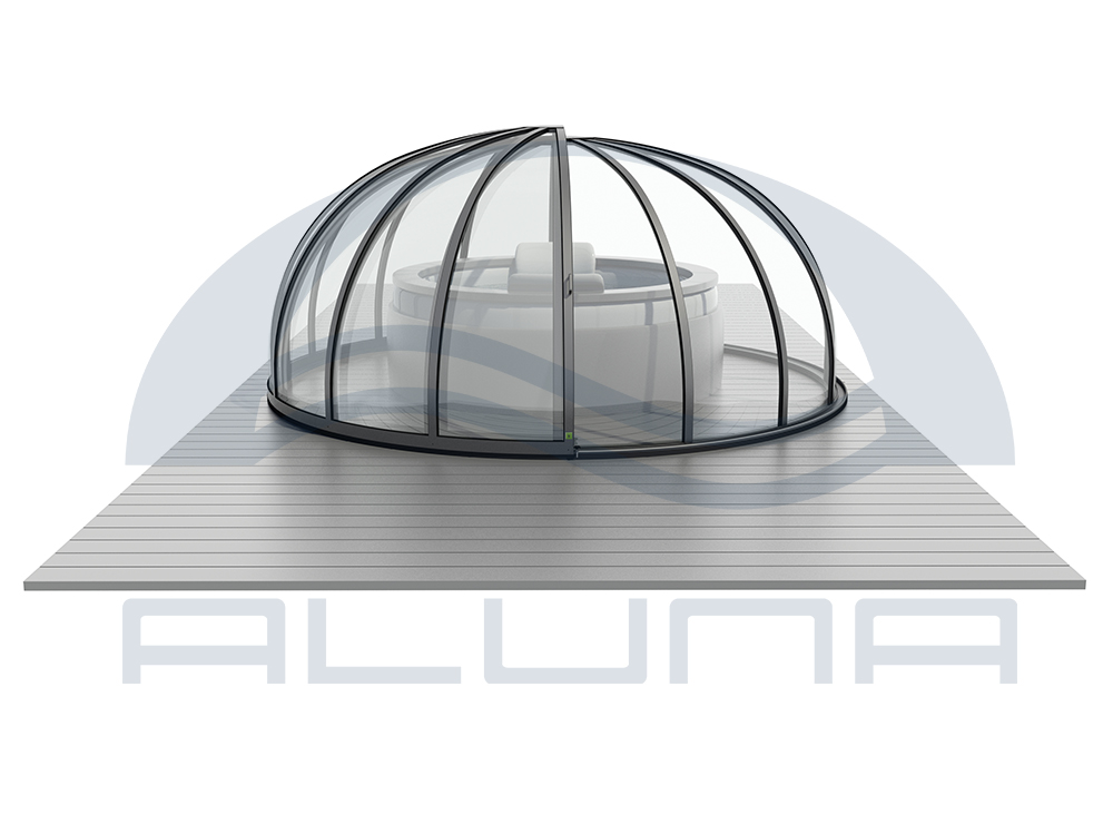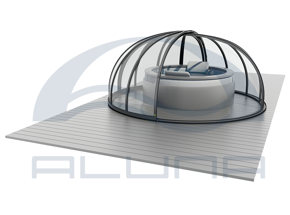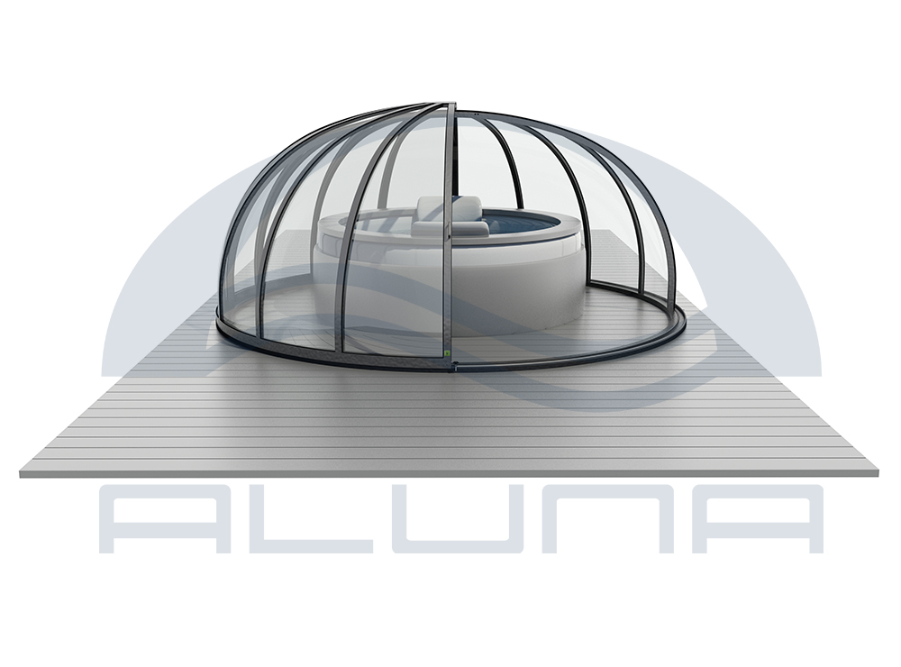 Aluna® Ufo är ett tak skapat med tanke på runda badkar, för att utgöra en designmässig helhet i duet med poolen.