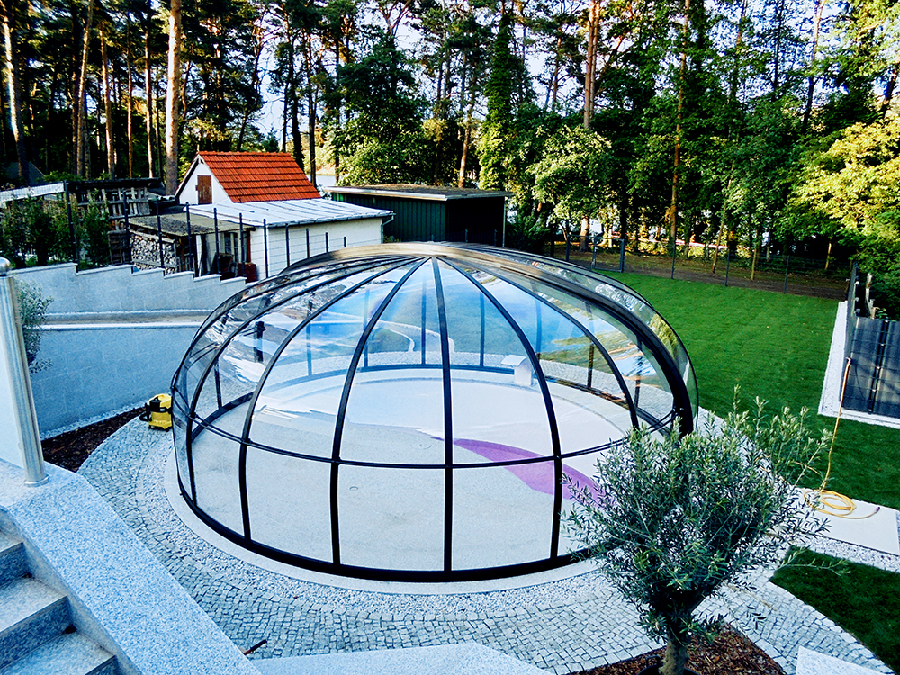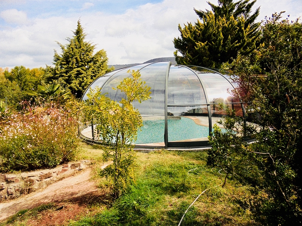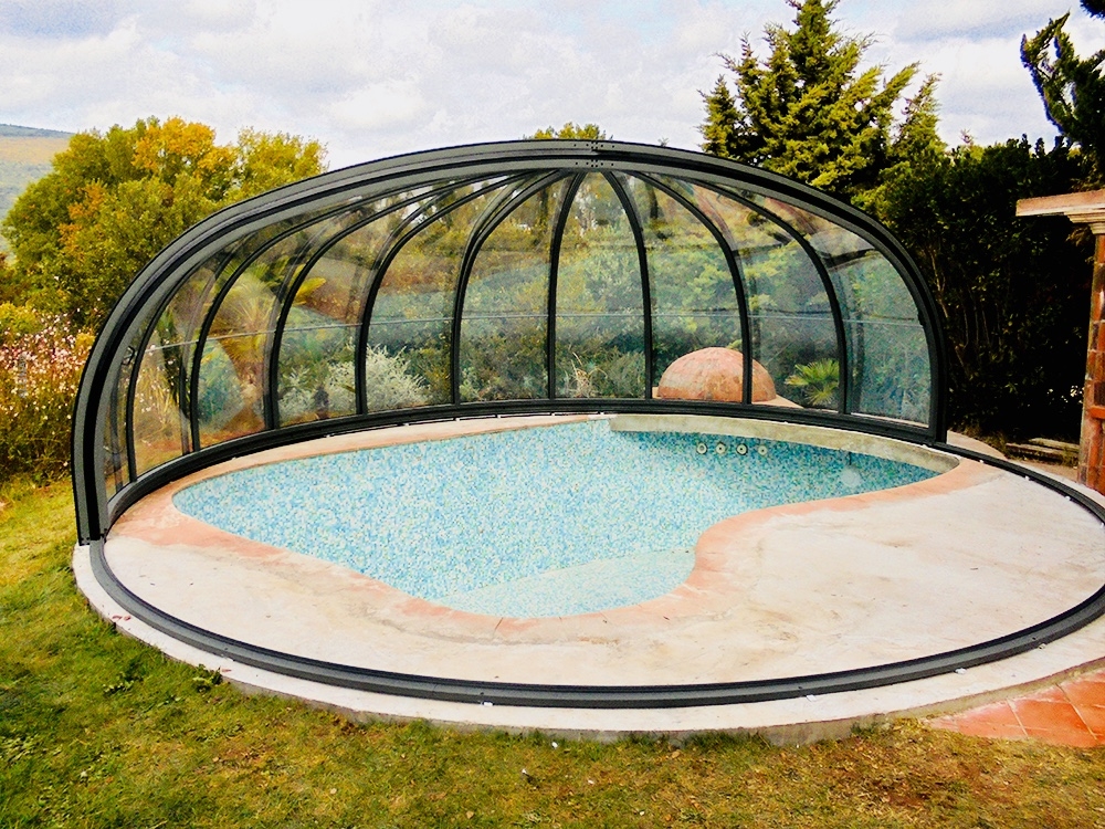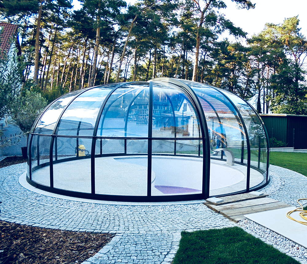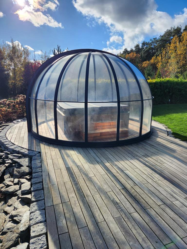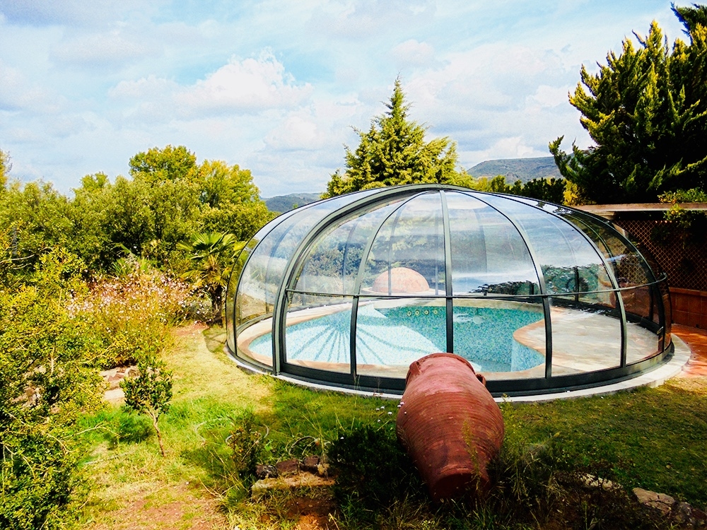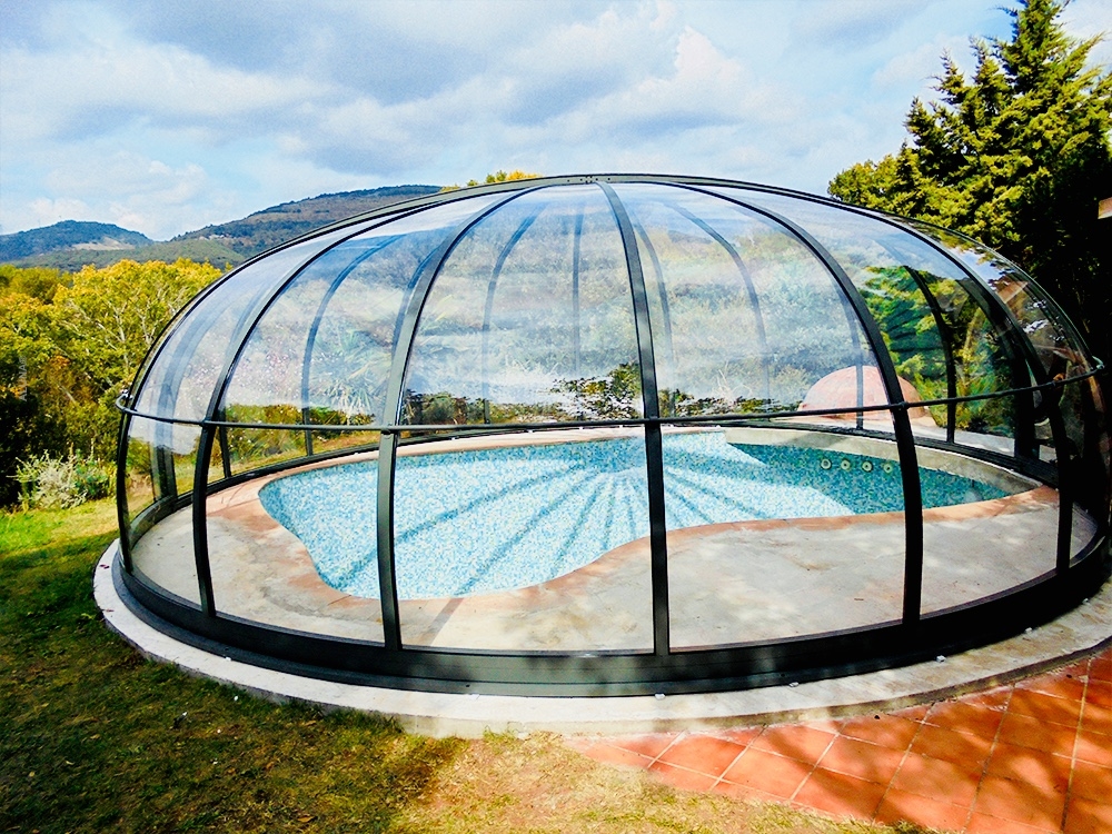 Aluna® Ufo är ett tak skapat med tanke på runda badkar, för att utgöra en designmässig helhet i duet med poolen.